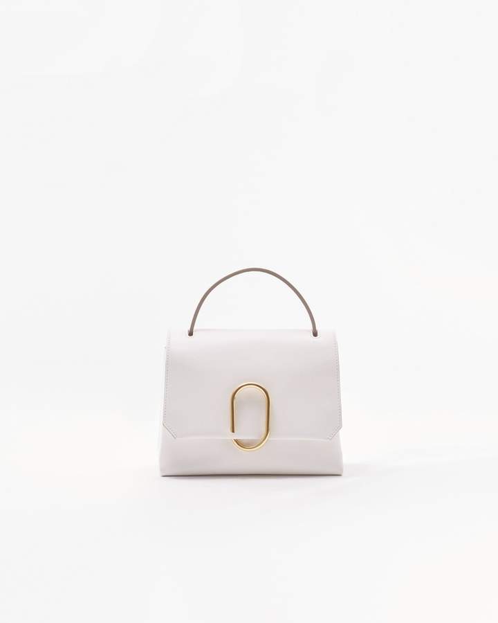 3.1 phillip lim Alix Mini Top Handle Satchel in White. 3.1 phillip lim Alix Mini Top Handle Satchel in White. Cow leather exterior with canvas lining. Flap top with signature paper clip closure. Interior dual compartment with slip pocket. Measures approx 8.5 W x 5.5 H x 4 DDetachable adjustable shoulder strap measures approx 43 with a 19 drop. Imported. 31PL-WY31. AE19 A053MCC.