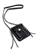 Product Info 50% OFF The most modern and practical place to store your essentials on the go, the Dolly Pocket Lanyard is your new go-to accessory. Stash your cards, ID, and cash wherever you go and wear it as a stylish micro crossbody or store it in a larger bag. Crafted with sleek leather, featuring polished silver studs and snap button closure, and leather shoulder strap. Includes both front and back pocket. - Color: Black - 100% Leather - 6"H x 5.25"W x 0"D - 22" Shoulder Strap - Style #: AS17-P026NPS - Dust bag included