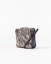 Carried on the runway, mini square crossbody with cow hair centered framed with smooth leather panels, hardware-accented shoulder strap with zip-top closure. 75% Cow Leather, 25% Cow Hair 7.5"H x 7.5"W x 2.5"D 20" On Longest, Adjustable Strap AF18-B477ZBC-BLK-WHITE Please note this item is Final Sale and cannot be returned or exchanged.