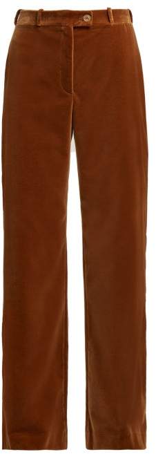 Wide Leg Cotton Velvet Trousers - Womens - Beige