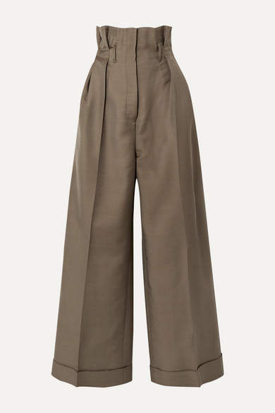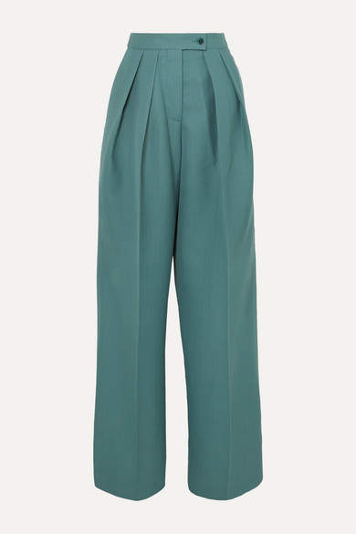 Perrie Wool-blend Twill Wide-leg Pants - Army green