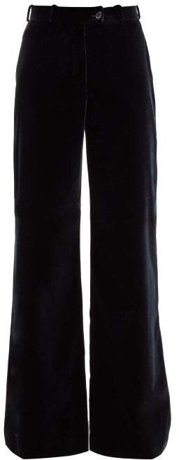 Wide Leg Velvet Trousers - Womens - Navy