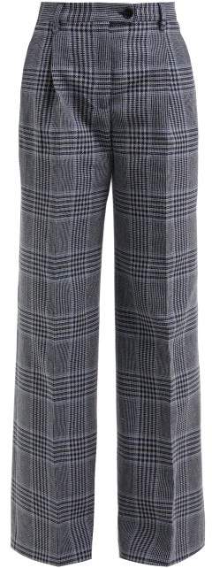 Checked Wide Leg Cotton Blend Trousers - Womens - Navy Multi