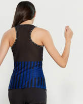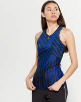 Crew neck, sleeveless, mesh racerback Allover print, contrast logo details 80% Recycled Polyester 20% Spandex Machine wash cold Imported Ladies Model shown is 5’11" and is wearing a size small