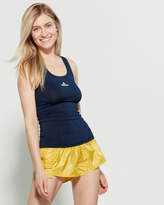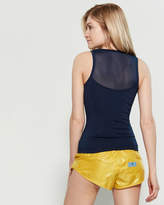 U-neck, sleeveless, back mesh panel Contrast logo detail at front 88% Polyester 12% Spandex main material, 92% Polyester 8% Spandex mesh part Machine wash cold Imported Ladies True to size Model shown is 5’10" and is wearing a size 28