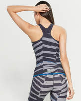 Round neck, sleeveless, front quarter-zip closure Racerback, textured body, allover print 54% Nylon 37% Spandex 9% Polyester Machine wash cold Imported Ladies Model shown is 5’11" and is wearing a size small