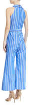 Alexis Eckhart Striped Sleeveless Wide-Leg Jumpsuit