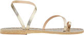 Product Details Stunning leopard leather sandals handmade by skilled artisans in Greece feature a toe ring and gold straps. Leather upper, lining, and sole. In gold/leopard. Made in Greece. Item listed in Italian sizing please make note of accurate size conversations. This item was pre-shot and written as a sample and may be subject to change in production including fabrication and other construction
