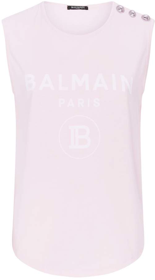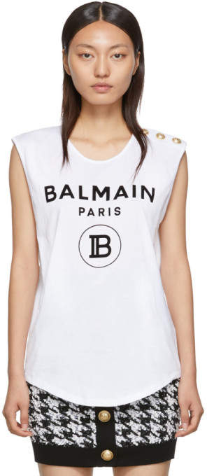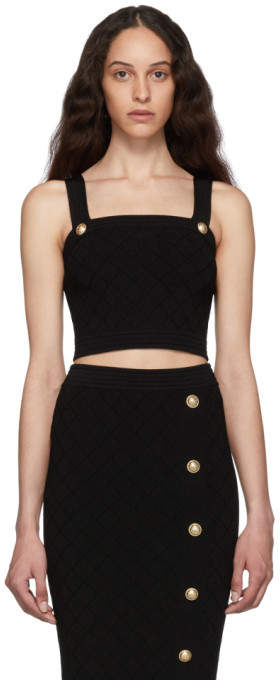 Balmain White Knit Crop Tank Top