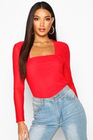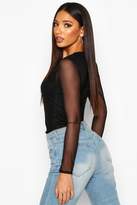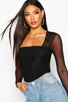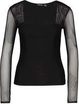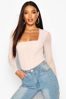 boohoo Mesh Square Neck Long Sleeve Top