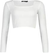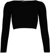 boohoo Square Neck Long Sleeve Knitted Crop Top