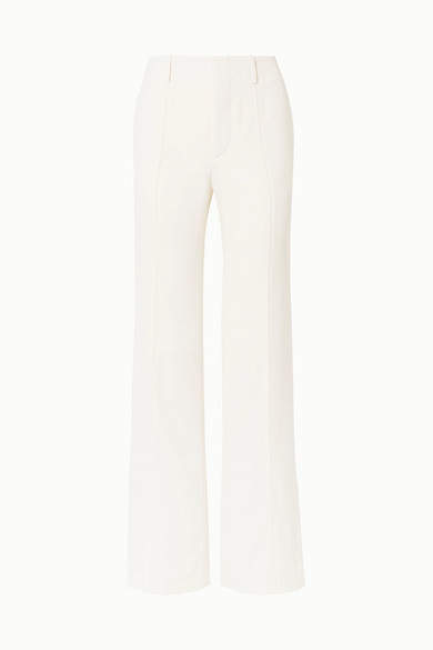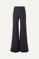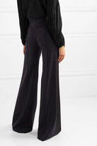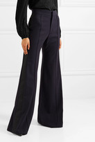 Chloé Satin-trimmed Stretch-wool Wide-leg Pants - Navy