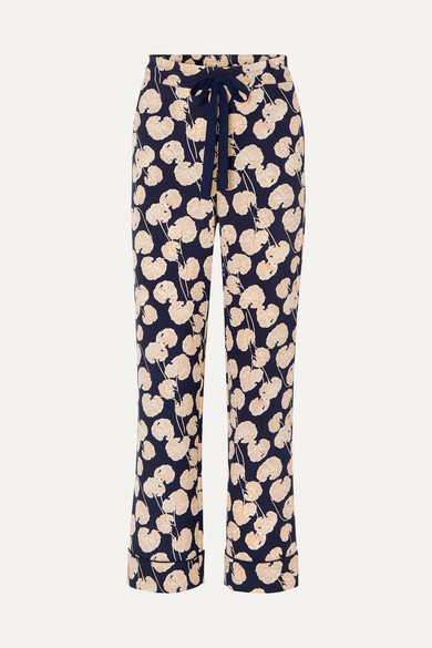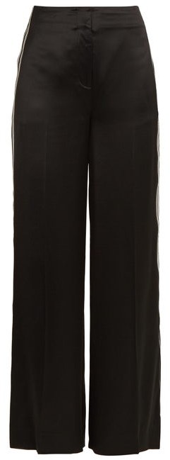 Diane von Furstenberg's 'Ellington' silk-crepe pants are cut in a sporty yet elegant wide-leg shape. The sides are detailed with cornflower-blue stripes and they have a comfy elasticated waistband. Wear them with a casual tee and sneakers, or the matching top and strappy sandals.