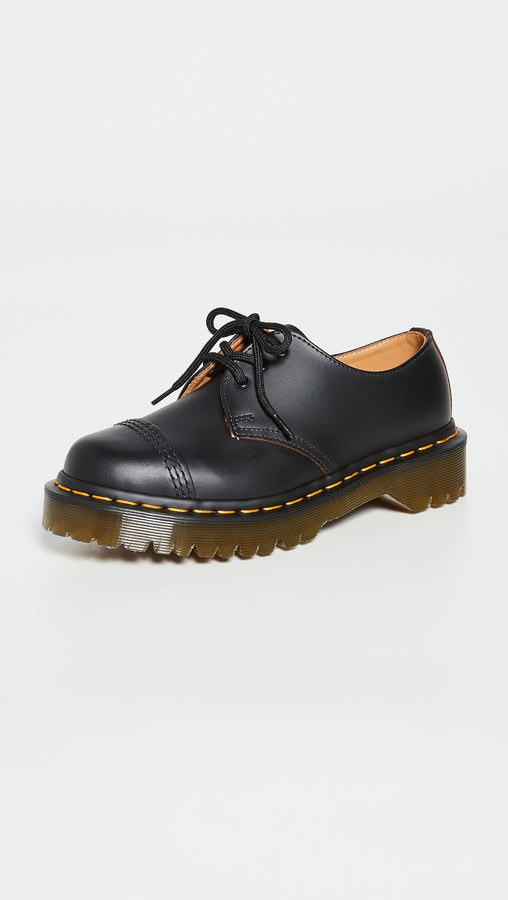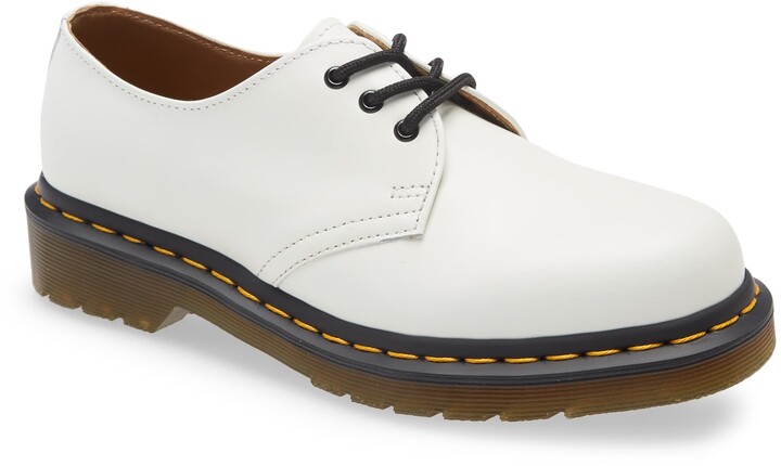 From the Originals Collection. The classic 3 eye shoe, this is the second style that Dr. Martens made. Crafted for industry and made rebellious by generations of non-conformists, this design with classic Docs DNA, includes grooved edges, yellow stitching and smooth, original durable leather. Constructed on the iconic and comfortable Dr. Martens air-cushioned sole. Built to last with a durable Goodyear welt. Leather upper Round toe Lace-up vamp Leather lining Rubber sole Imported. Style Code: 0400012695951