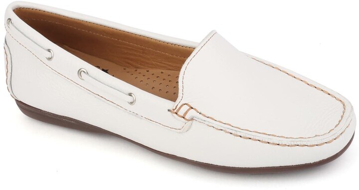 A pair of deck shoes add preppy styling to your weekend wardrobe, made from buttery leather that make it great for a refined look.Sizing: True to size. M=medium width. Gel heel insert, densely padded footbed and blunt arch support for optimized comfort. Genuine Calf leather upper. Fully lined in Genuine Kid Napa Calf leather. Handcrafted and stitched. Approx. 1/2 inch heel. Signature durable and flexible injected rubber sole with cup-sole technology for walking traction and superior comfort. Imported
