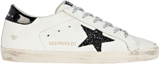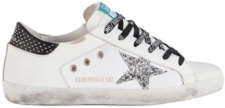 Superstar Distressed Glittered Leather And Canvas Sneakers - White