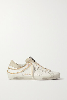 Superstar Chain-embellished Distressed Leather And Suede Sneakers - White