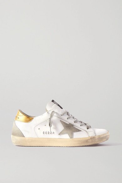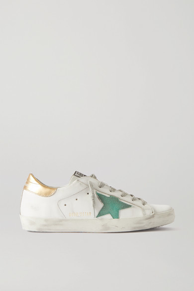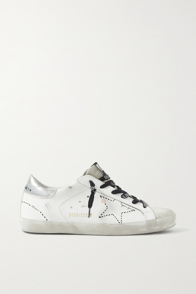 Superstar Metallic Distressed Leather And Suede Sneakers - White