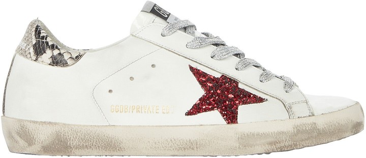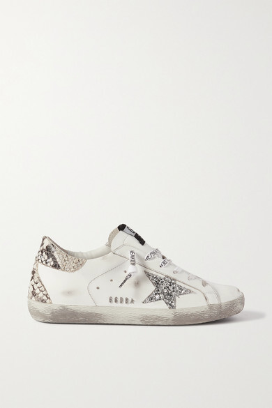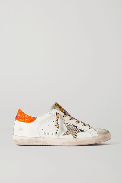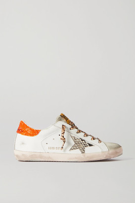 Superstar Distressed Glittered And Python-effect Leather Sneakers - White