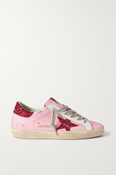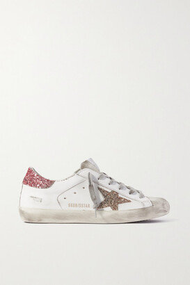 Superstar Glittered Distressed Leather Sneakers - Pink