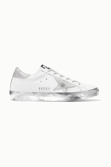Superstar Distressed Metallic Leather And Suede Sneakers - Silver