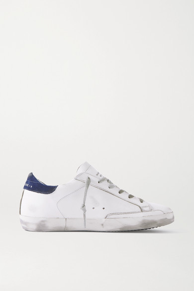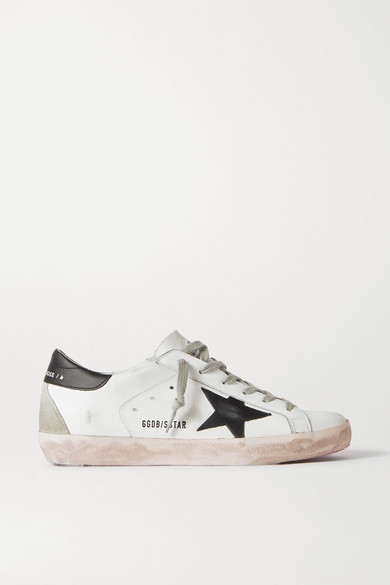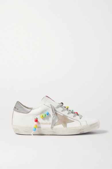 Superstar Bead-embellished Distressed Leather And Suede Sneakers - White
