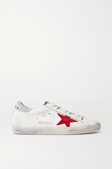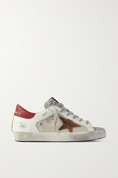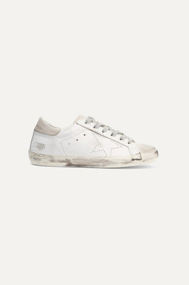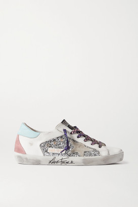 Superstar Glittered Distressed Leather And Suede Sneakers - White