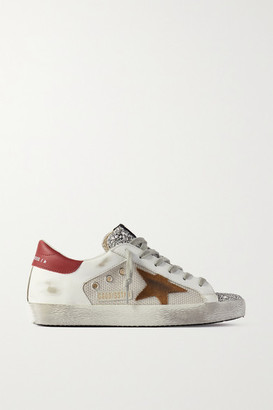 Superstar Glittered Distressed Leather, Suede And Canvas Sneakers - White