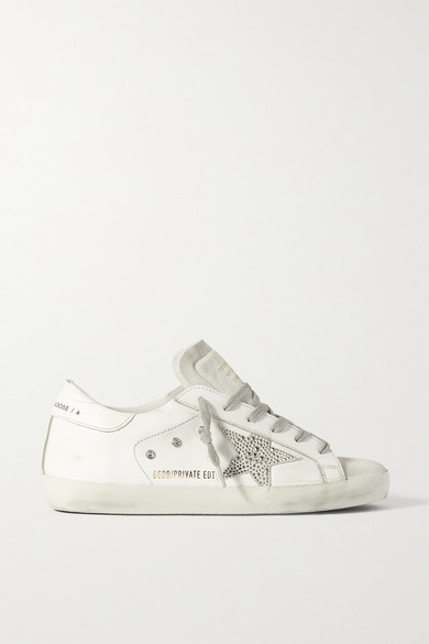 Superstar Crystal-embellished Distressed Leather And Suede Sneakers - White