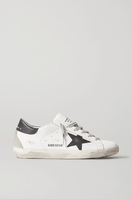 Superstar Metallic Distressed Leather And Suede Sneakers - Black