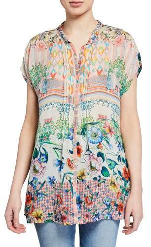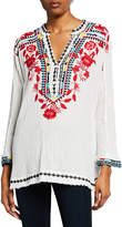 Johnny Was Belvedere Long-Sleeve Embroidered Gauze Blouse
