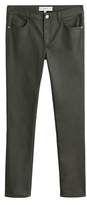 Skinny-fit, Mid-rise, Waxed, Five pockets, Belt loops, Zip and button