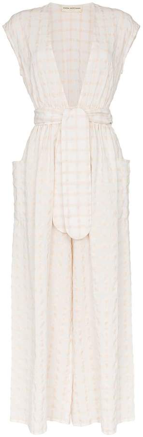 Mara Hoffman - Streamlined and feminine, Mara Hoffman's Whitney jumpsuit in blue and white striped hemp is a considered warm-weather option. It's crafted to a relaxed silhouette with a deep V-neckline that leads to a coordinating waist tie to cinch in the profile and has wide legs to echo the laid-back mood. Wear it with a raffia bag and metallic slides for appointments in the city. 100%HEMP