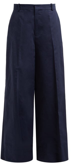 Wide Leg Cotton Blend Trousers - Womens - Dark Blue