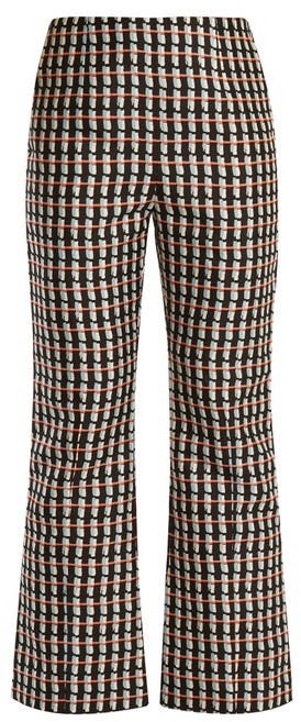 Tartan Print Flared Trousers - Womens - Orange Print
