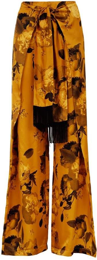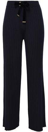 Wide-leg pants Striped Silk-satin High-rise cut Drawstring waist Velvet trims Fluid fabric Dry clean Imported