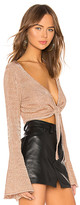 NBD x Naven Melina Crop Top in Metallic Gold. - size L (also in M,S,XS) NBD x Naven Melina Crop Top in Metallic Gold. - size L (also in M,S,XS) 60% poly 20% lurex 20% nylon. Hand wash cold. Front tie closure. Flared sleeves. Metallic knit fabric. NBDR-WS303. NVS15 R18. For the girl who's the life of the party. For the girl who's always up for a glass of champagne. For the girl who likes to keep her closet as filled with as her social calendar, there's NBD. The young-at-heart line features dresses that every it girl covets and pieces that are sexy, flirty, fun and now.