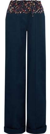 Printed Poplin-paneled Cotton-blend Twill Wide-leg Pants