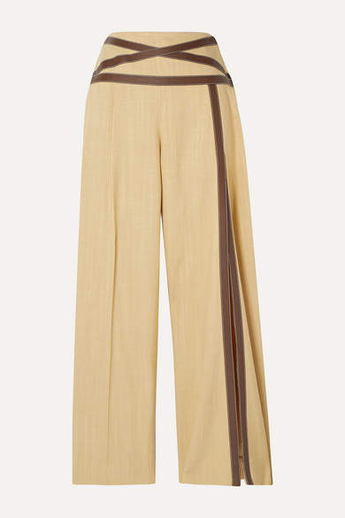 Criss Cross Applesauce Faux Leather-trimmed Canvas Wide-leg Pants - Beige