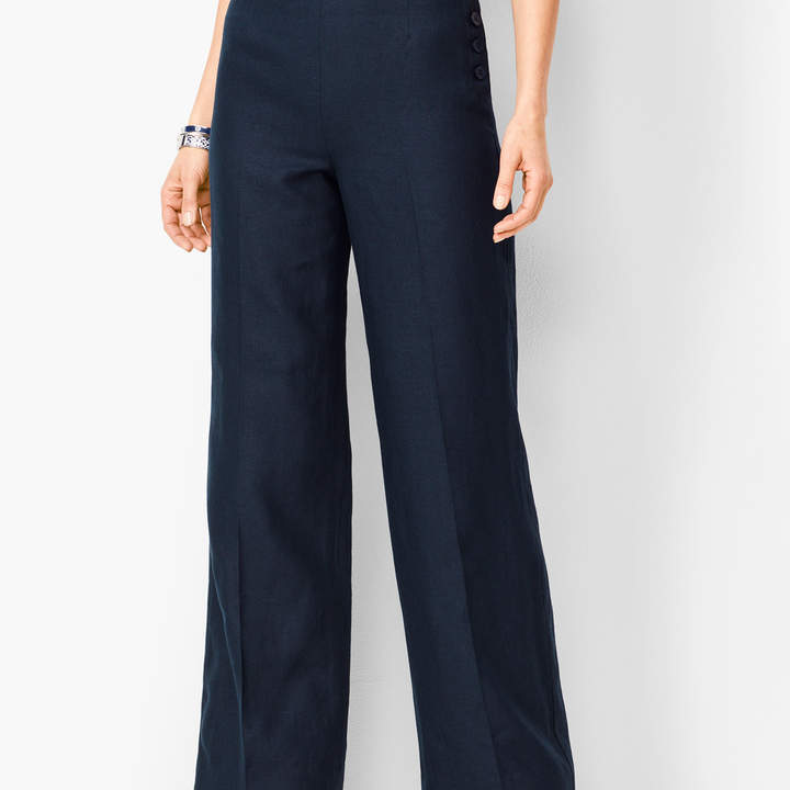 Talbots Washed Linen Wide-Leg Pants - Stripe