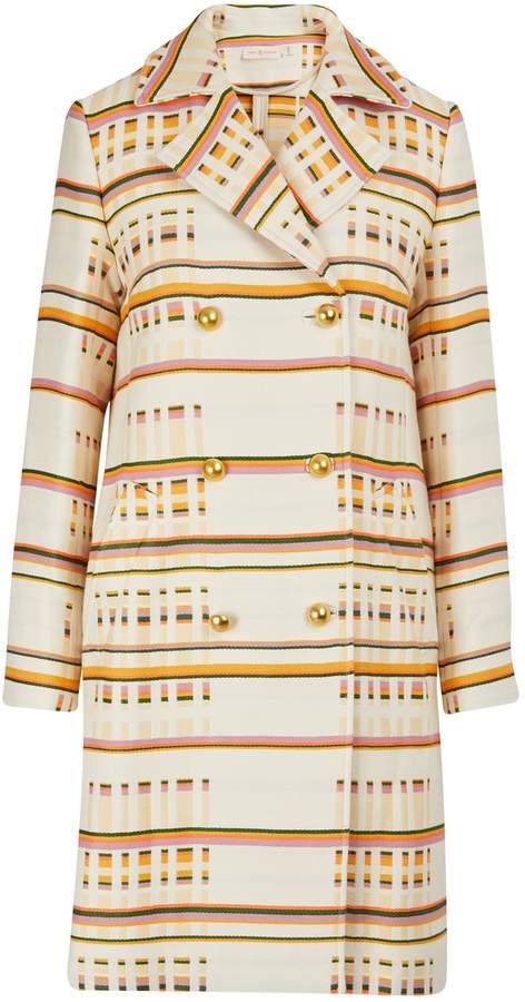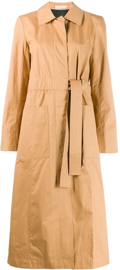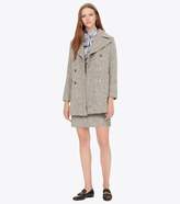 Our double-breasted Kinsley Coat is tailored for an oversized fit in a rich wool-linen blend, with exaggerated notched lapels, elbow patches with out-turned seams and round, stacked- metal buttons. The military-inspired shape is a great foil for romantic silhouettes — as seen on our fall runway.