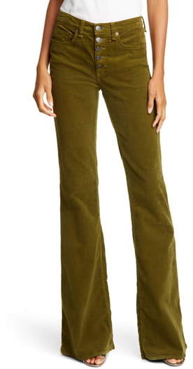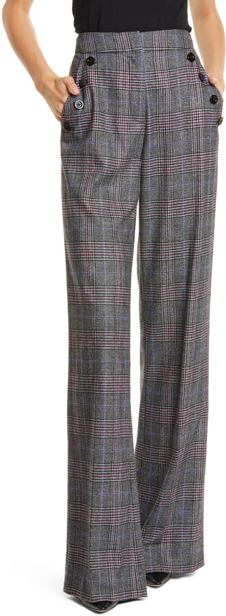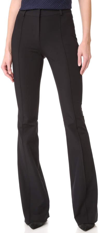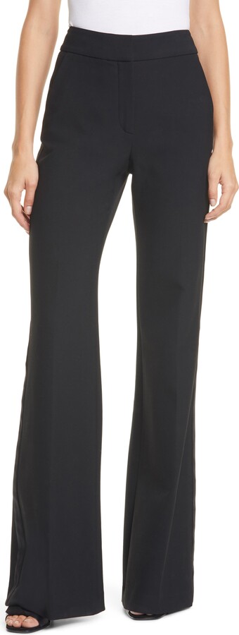 Veronica Beard "Maldon" pants.High-rise; striped belt with metal buckle.Side pockets; back besom pockets.Fitted through wide legs.Full length.Hook/zip fly.Viscose/spandex.Dry clean.Imported.