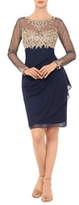 Xscape Evenings Golden Embroidered Long Sleeve Cocktail Dress