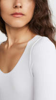 Fabric: Mid-weight ribbed knit Full coverage back with snap gusset Slim fit Scoop neck Long sleeves Shell: 44% modal/43% viscose/10% nylon/3% spandex Trim: 45% modal/45% viscose/8% nylon/2% spandex Trim: 42% modal/41% viscose/10% nylon/7% spandex Wash cold Imported, China Style # YUMMI30210