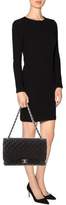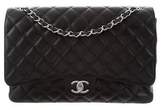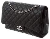 Black quilted Caviar leather Chanel Classic Maxi Double Flap Bag with silver-tone hardware, single shoulder strap with chain-link and leather accents, single slit pocket at exterior, single pocket at flap with zip closure, burgundy leather interior, dual interior compartments; one with flap and snap closure, three slit pockets at interior walls and flap with CC logo-embellished turn-lock closure at front. Serial number reads 15377688. Includes authenticity card and box. Shop authentic designer handbags by Chanel at The RealReal.