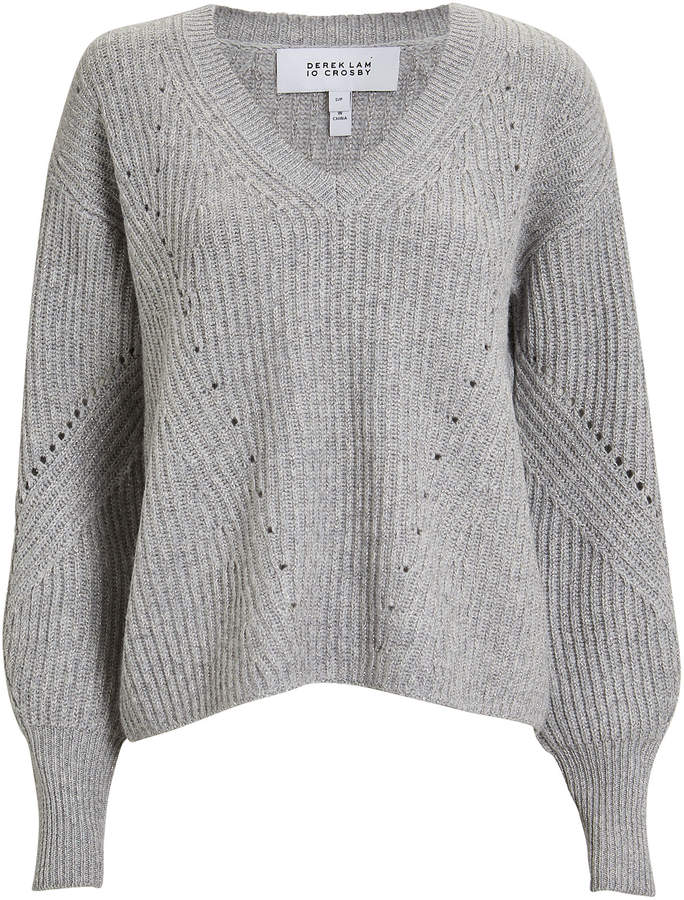 Derek Lam 10 Crosby's mélange grey sweater is stockinette-stitched from soft cashmere. This style is finished with knot details at the open shoulder and cuffs. Wide crewneck. Self-ties at cut-out shoulder. Fully fashioned sleeves. Self-tied cuffs. Rib-knit bottom. Pulls over. Available in Grey. 100% cashmere. Dry clean. Imported. Our model is 5'10"/178cm and typically wears a US size 4/Small/26. Derek Lam 10 Crosby Women's Tied-Shoulder Knit Cashmere Sweater - Gray Size M A great designer gift. Stay on top of Spring trends and shop Derek Lam 10 Crosby at Barneys Warehouse.;Knit/cashmere