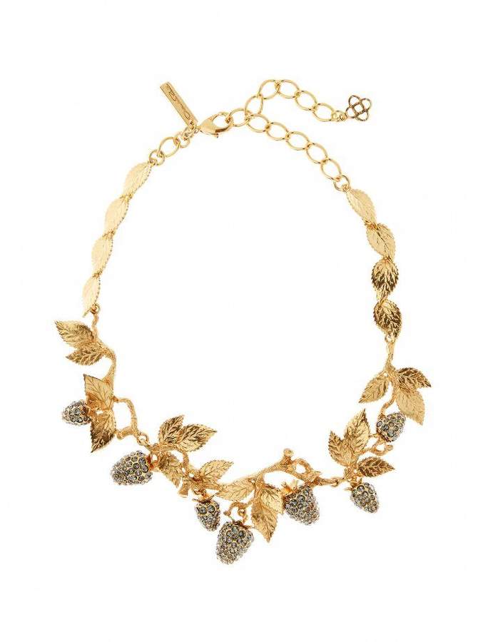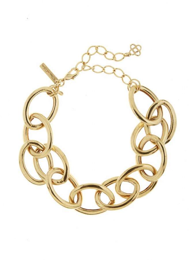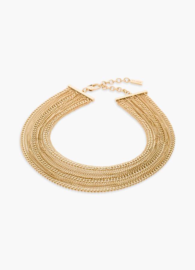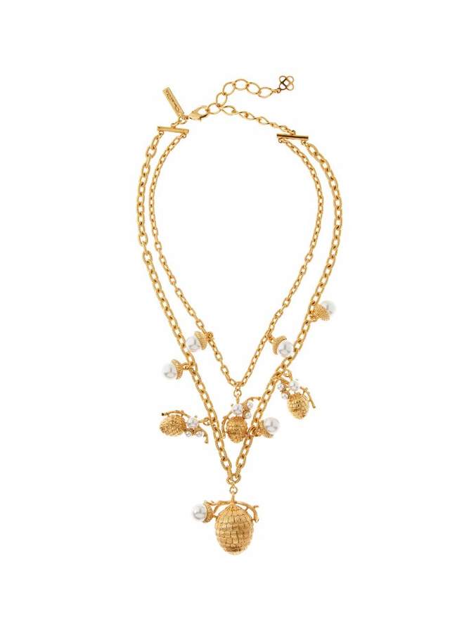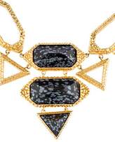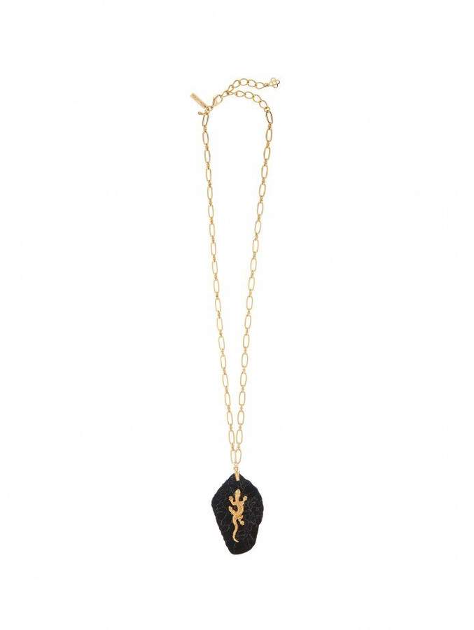 18K yellow gold-plated brass Isharya Croc statement necklace featuring black and white obsidian accents, textured finish and adjustable lobster clasp closure.