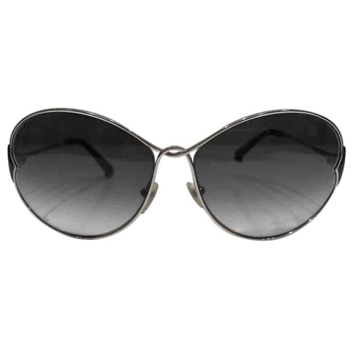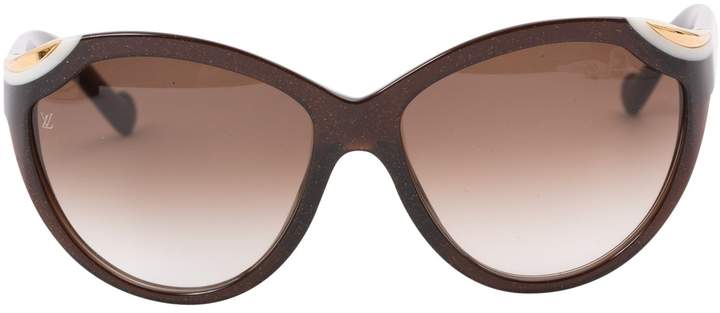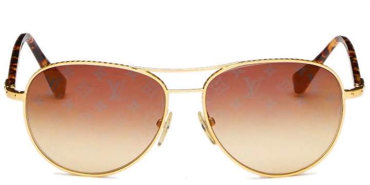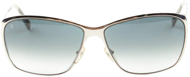 Brass Louis Vuitton rectangular sunglasses with tinted lenses and glitter arms.