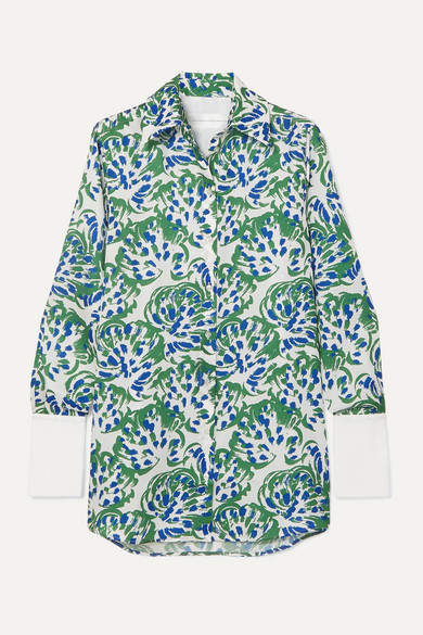 Styled with an asymmetric off-shoulder neckline, this bright white cotton shirt is Victoria Beckham's reinvented take on a wardrobe icon. Styled with a slim fit, wear it with suit pants for business or dark denim for casual.