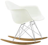 Details This white Vitra rocking chair, designed by Charles and Ray Eames, is an iconic piece of furniture crafted for comfort, style and longevity. Composed of polypropylene it features integrated arm rests, dyed-through colour for a non-fade finish and is mounted to two wooden rockers for a smooth and gentle motion. - 74cm x 70cm 90cm Unfortunately we are unable to ship this item to countries outside of the U.K.